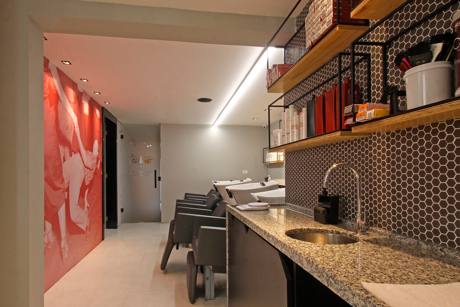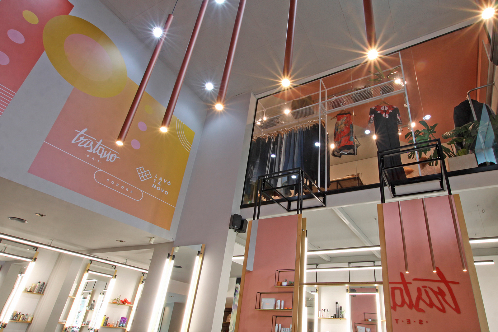 No pavimento superior fica o Lavo, com sua área de atendimento além de estoque e apoio administrativo.